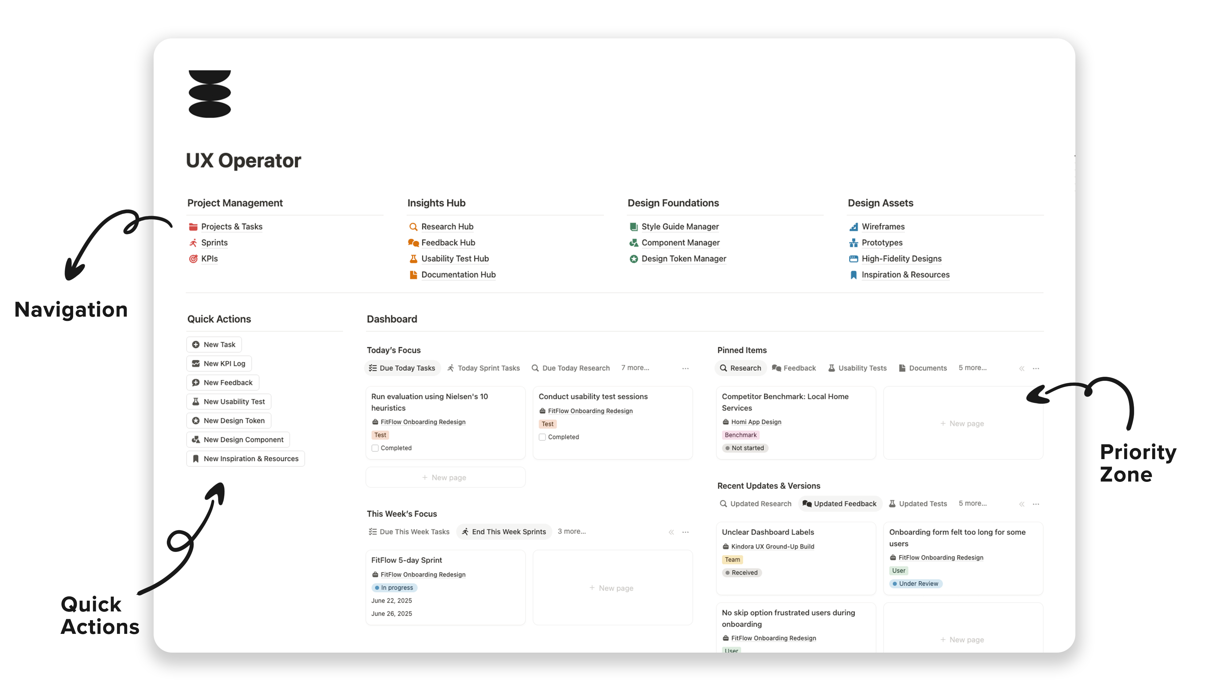 UX Operator brings everything together in one streamlined Notion workspace, built specifically for UX professionals.